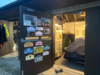 On Saturday 11th November club members, together with members of the Fairford Mens Shed, neighbours and friends met at Bunny Lees-Smith garage and workshop in Hankerton to help sort out and dispose of the amazing collection of tools and motoring memorabilia he has collected over the years. Whilst on one hand it was a sad occasion for Bunny, on the other hand he could see that many of the tools would find good homes and continue to be used in the future. Through this many of Bunny’s memories will live on, in particular through the wall of rally plates (see photo), from car rallies undertaken by Bunny and which are now displayed on ‘Bunny’s Wall’ at Harry’s (Steve Harding’s grandson) home. As the day coincided with the 11th November it was suggested that those selecting tools etc, could make a donation to the British Legion which resulted in an amazing £1,200 being collected for the charity - well done everyone and a gesture much appreciated by Bunny.